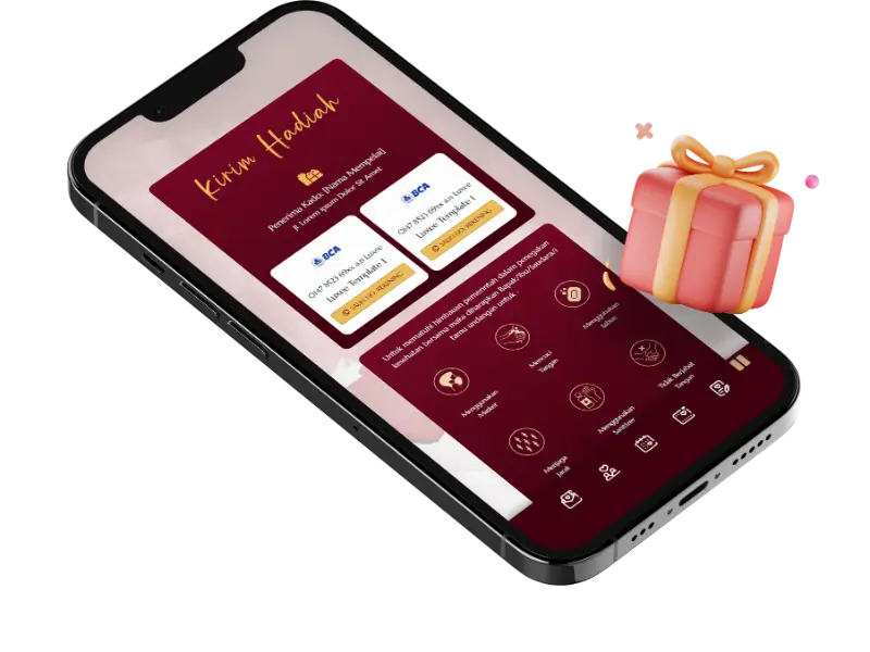 Kirimkan hadiah spesial untuk mempelai dengan melakukan transfer ke akun dompet digital ataupun kirim kado ke alamat mempelai jadi lebih mudah dan cepat.