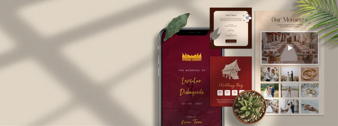 Fitur interaktif kami meliputi RSVP online, galeri foto, lokasi acara dengan peta digital, musik latar, hingga video animasi yang memukau.